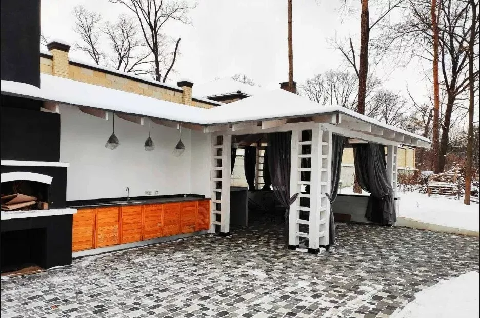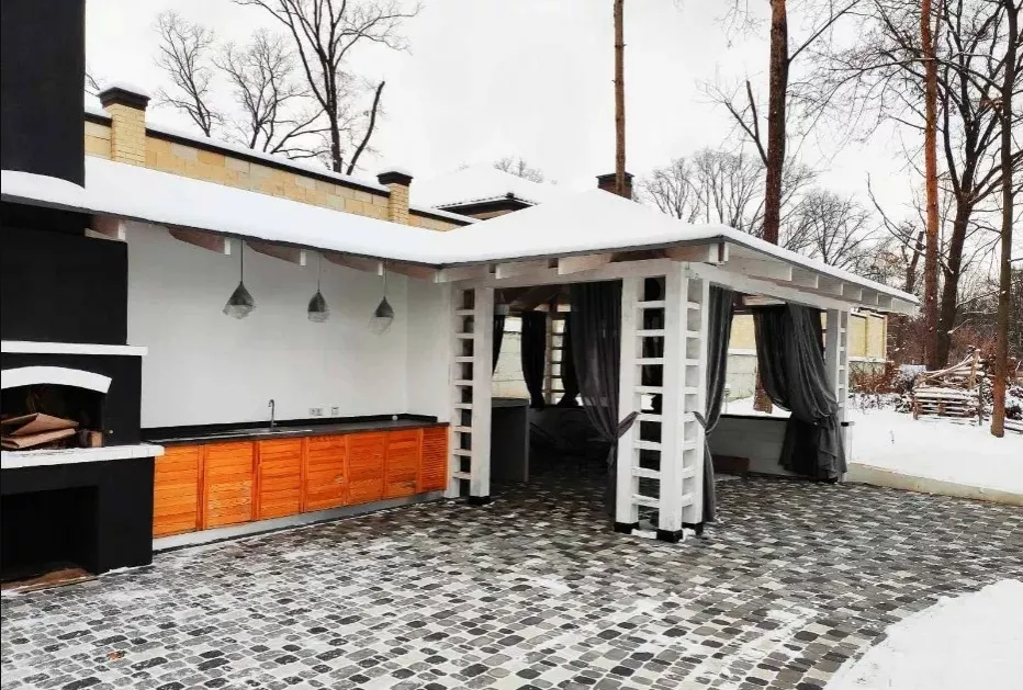 Аренда коттеджа на 4 спальни в охраняемом коттеджном посёлке Парк Хаус. На первом этаже расположена большая кухня-студия площ. 50квм с выходом на террасу во двор, кабинет, детская и гостевая спальня. На втором этаже находится хозяйский блок со своим санузлом и гардеробной, детская комната и отдельный санузел+постирочная. В подвале предусмотрены комната отдыха, подсобные помещения и котельная. Дом построен из экологически чистых материалов, сделано качественное утепление всего фасада, мембранная гидроизоляция, заведены все городские коммуникации. Сделаны все наружные работы, внутри дом полностью отштукатурен, разведена электропроводка, ведётся благоустройство территории. Коттедж построен по европейскому проекту для проживания 4-6 человек. Дом из пеноблока с качественным утеплением, использовались лучшие строительные материалы, качественные МП-окна. На первом этаже предусмотрены гостиная-студия с камином, кабинет и 2 гостевые комнаты, на втором этаже расположены 2 спальни со своими гардеробными и санузлами, есть просторный подвал для домашего кинотеатра, спортзала и подсобных помещений. На участке 14.5 соток начато строительство комплекса отдыха с терассой и мангалом. Дом готовностью 60%, участок приватизирован, все коммуникации городские.