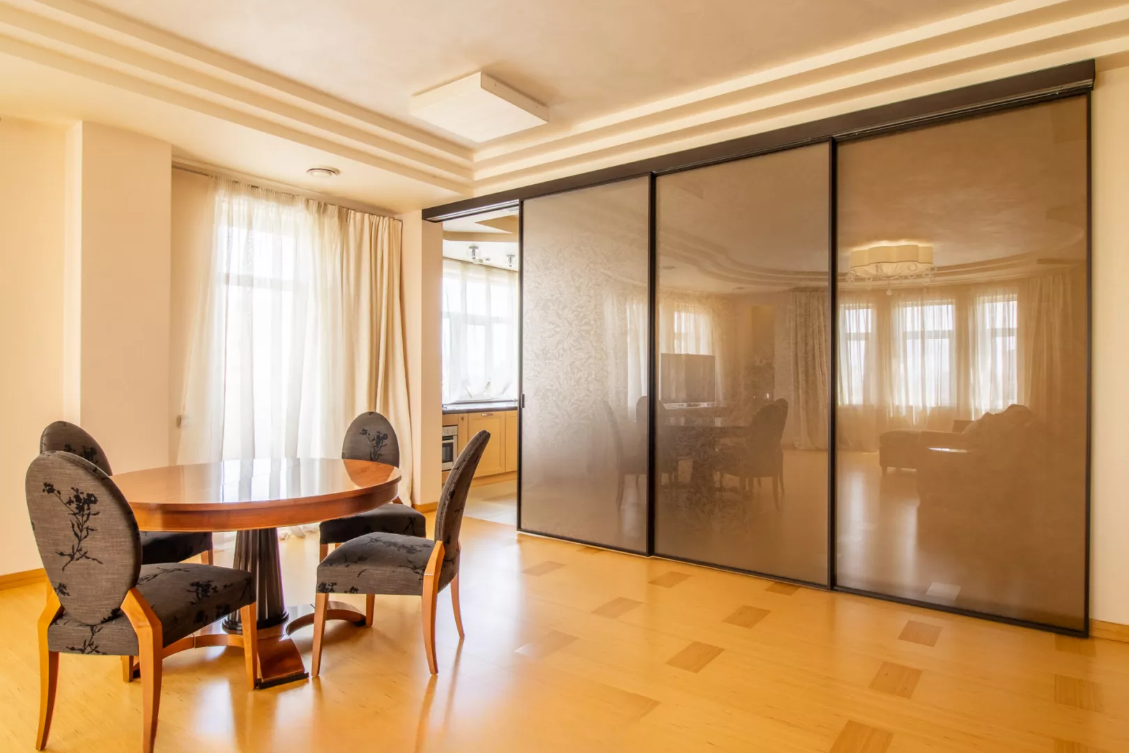 Продам шикарную трехкомнатную квартиру с большой кухней студией и с двумя спальнями в престижном доме. В квартире выполнен высококачественный дизайнерский ремонт, по всем комнатам смонтирована система канальной вентиляции, на полу дорогая паркетная доска из бамбука, в дверях вставки из фацетированного стекла, кухне и санузлах керамогранитные полы с подогревом. Была закуплена дорогая деревянная мебель, итальянские светильники и дизайнерские шторы, бытовая техника Siemens. Подбор строительных материалов, качество отделочных работ, продуманный декор, удобство в обслуживании инженерных систем в этой квартире говорят о том, что к ремонту был основательный подход, все сделано добротно и на долгие годы. В ЖК Усадьба Чернышева работает собственная обслуживающая организация, подъезд и паркинг находятся под круглосуточным наблюдением, есть возможность подняться с лифта непосредственно на свой этаж. Цена указана за аренду. Если вы подыскиваете готовую квартиру с ремонтом и мебелью для семьи из 3-4 человек – приглашаем вас на просмотр!