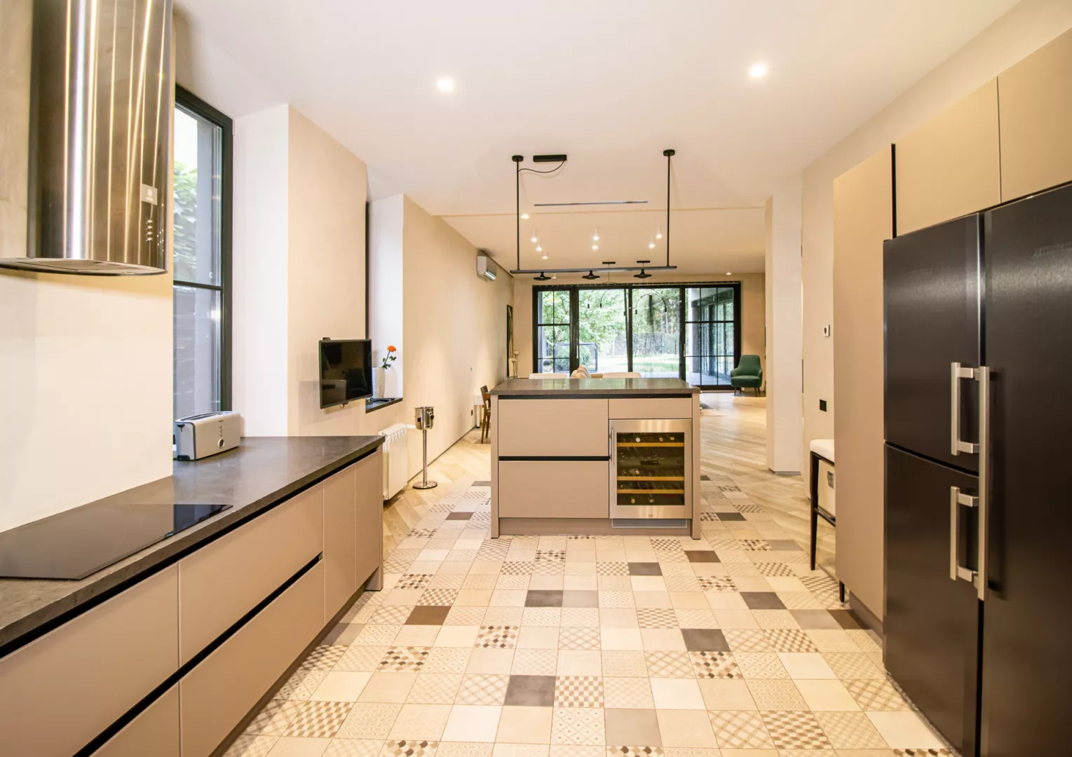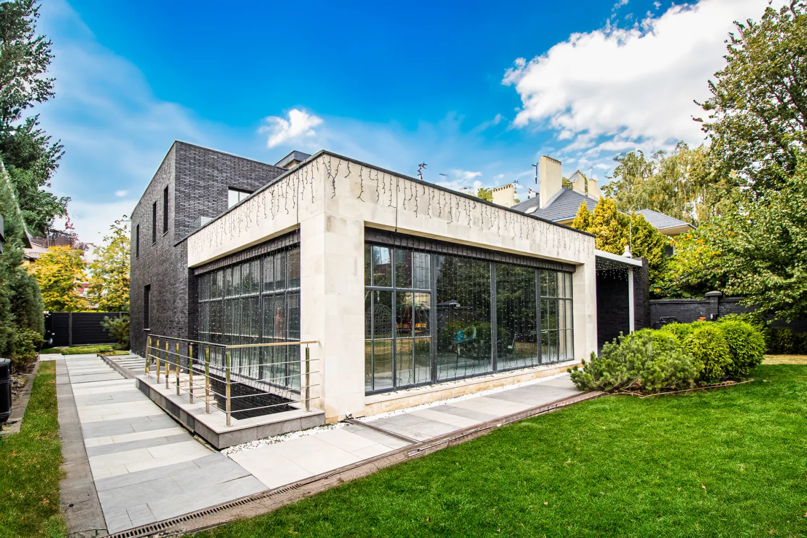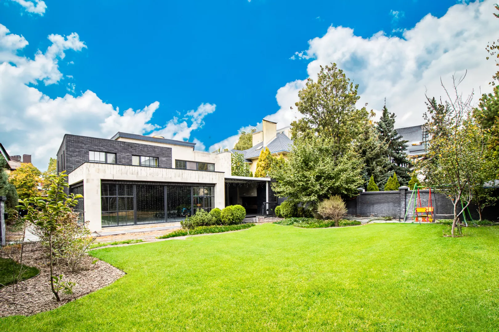 Дом расположен в самом сердце города рядом с Центральным парком и зоной отдыха Саржин Яр, в пяти минутах ходьбы от станции метро Научная. Дом двухэтажный, фасад украшен белым травертином и клинкерным кирпичом с большими панорамными окнами, очень светлый и просторный. Планировка дома включает в себя 4 большие спальные комнаты, 3 ванные комнаты, 2 гардероба, кухню-студию, прачечную, баню с бассейном с противотоком и встроенный гараж на 2 автомобиля. Прямо из гостиной вы можете попасть на уютную открытую террасу с открывающейся маркизой с помощью электропривода. Для времяпрепровождения на террасе обустроена зона летней кухни с открытым огнем, а также печь-гриль Хоспер. Для отдыха и оздоровления семьи к дому пристроена спа-зона с отдельным выходом на улицу, включающая большой 10-метровый бассейн с баней, в бассейне удобный вход для детей, есть противоток и декоративные подсветки. Отдельно внимание важно уделить системам инженерии и коммуникациям: 3-фазное электроснабжение мощностью 25 кВт; -котельная оснащена комбинированной системой отопления Viessmann с газовым и электрическими котлами; -каждая комната оборудована канальной системой микроклимата с кондиционированием и вентиляцией; -для обслуживания бассейна предусмотрено отдельное помещение в подвале с насосами и фильтрами для водоподготовки; -городская сеть водоснабжения и водоотвода, также для автономности есть своя скважина; -система подготовки и многоуровневой фильтрации воды При строительстве и обустройстве дома использовались только качественные современные материалы, вся сантехника, бытовая техника и мебель только премиальных производителей. В каждой комнате на полу натуральная паркетная доска. Все санузлы оборудованы системой подогрева полов. Панорамные окна оснащены системой автоматического открывания штор. К дому удобен асфальтированный подъезд. На участке 11 соток кроме жилого дома расположен дом охраны, гараж на 2 автомобиля с прямым входом в дом и большой детский игровой комплекс с батутом и скалодромом. Участок утопает в зелени, здесь выполнен профессиональный ландшафтный дизайн, высажено множество декоративных деревьев и цветов, установлена система автоматического полива. Особое внимание уделено охране территории: кроме частной охраны также по периметру установлены датчики автоматического сканирования участка. Дом был построен в 2018 году из красного керамического кирпича в два этажа с подвальным помещением. Общая площадь дома 445м2. Все коммуникации центральные.