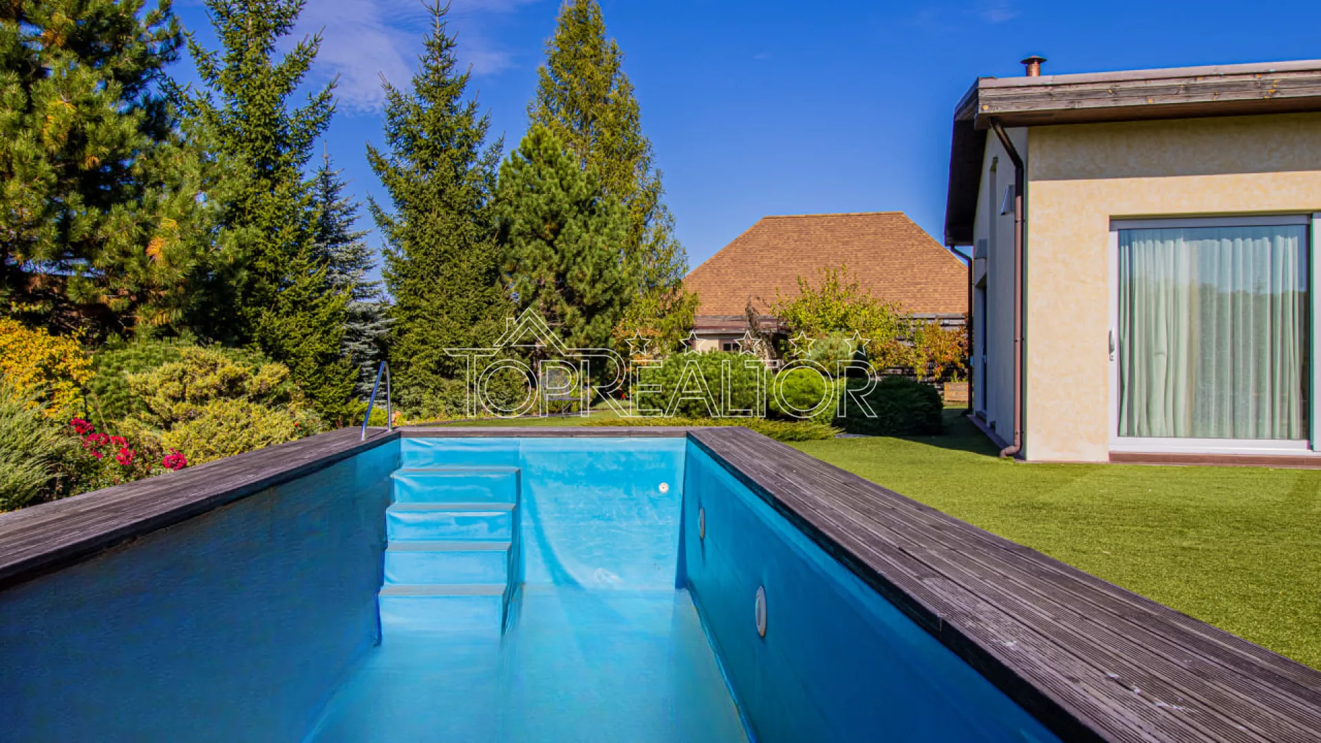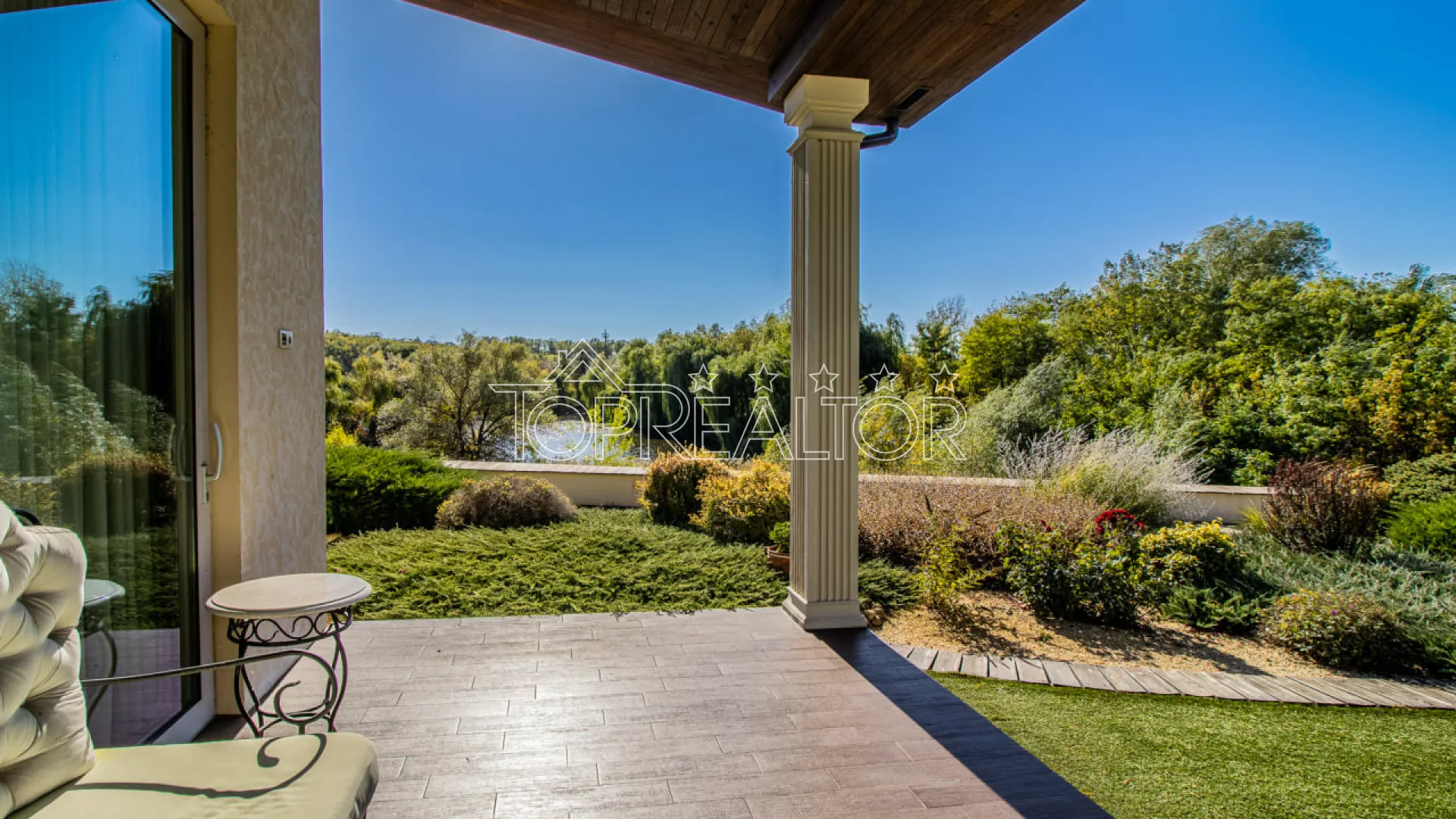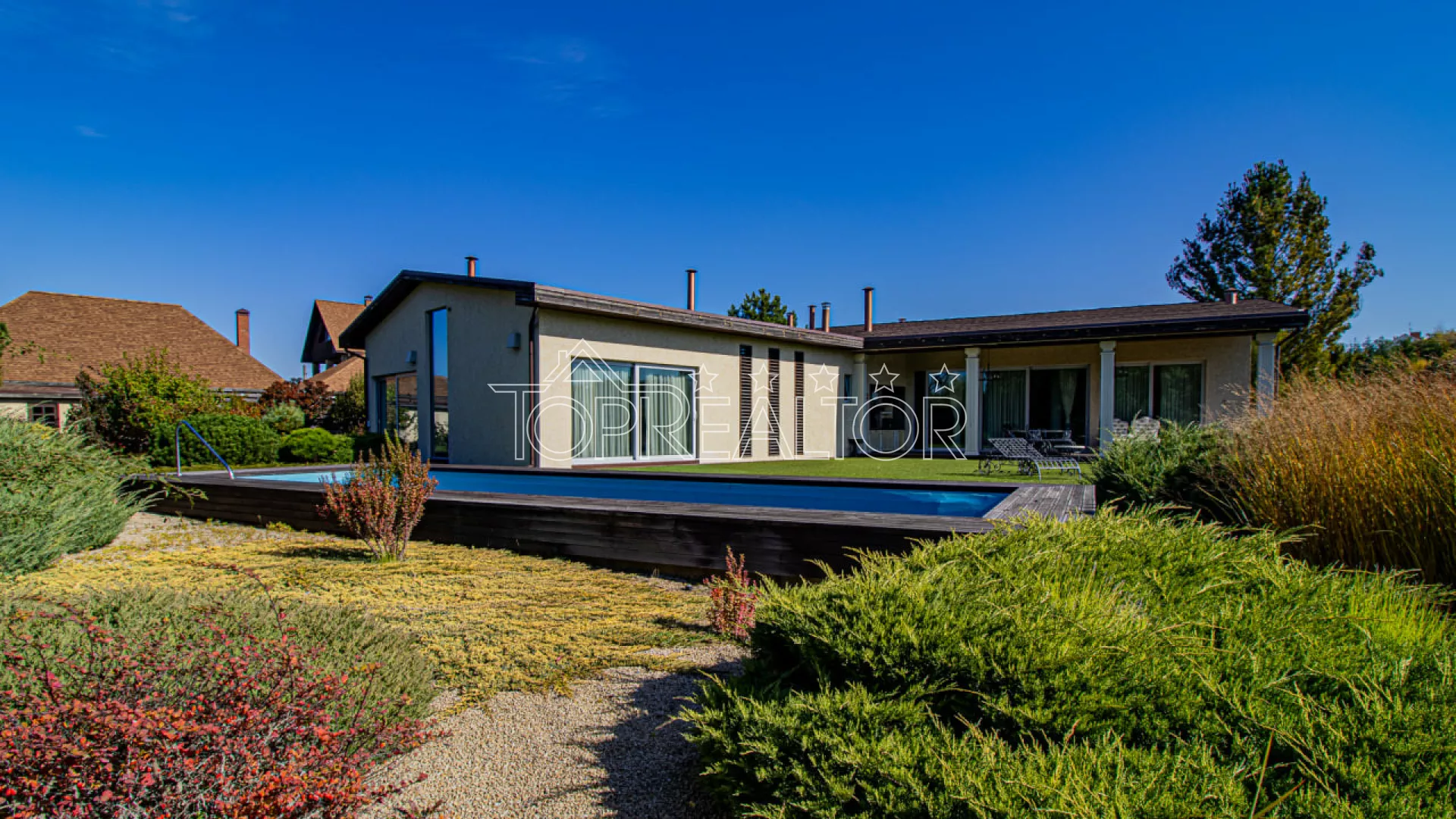 Современный одноэтажный коттедж на берегу озера — Флоринка-1 - Закрытый коттеджный посёлок премиум-класса - Локация: Флоринка-1, берег живописного пруда - Навес: на 3 автомобиля - Бассейн и зона отдыха Описание объекта Продам современный одноэтажный дом, расположенный в элитном коттеджном посёлке Флоринка-1 прямо на берегу пруда. Этот дом создан для тех, кто ценит функциональность, комфорт и эстетику, а также минимальные затраты на эксплуатацию. Из просторной гостиной-студии с панорамными окнами открывается живописный вид на воду. Рядом — два спальных блока с собственными гардеробными и санузлами, детская и гостевая комната. Из гостиной — выход на крытую террасу с мангалом, идеальную для вечернего отдыха. Техническое оснащение: - Отопление — газовый котёл Viessmann - Базальтовое утепление фасада и крыши - Тёплые полы и приточно-вытяжная вентиляция - Энергосберегающие окна и продуманная инженерия Участок 18 соток профессионально озеленён: автополив, декоративные деревья, кустарники, искусственный газон и летний бассейн на поляне с видом на воду. Есть летняя кухня и тех.помещение. Особенности: - Одноэтажный план — максимум удобства и света - Прямой вид на озеро и выход к воде - Минимальные расходы на отопление - Охраняемый посёлок с благоустроенной территорией