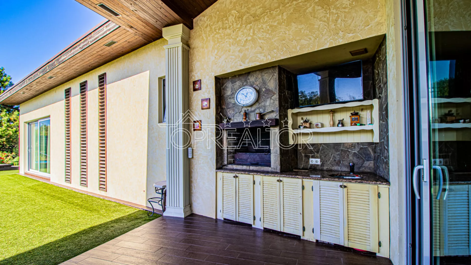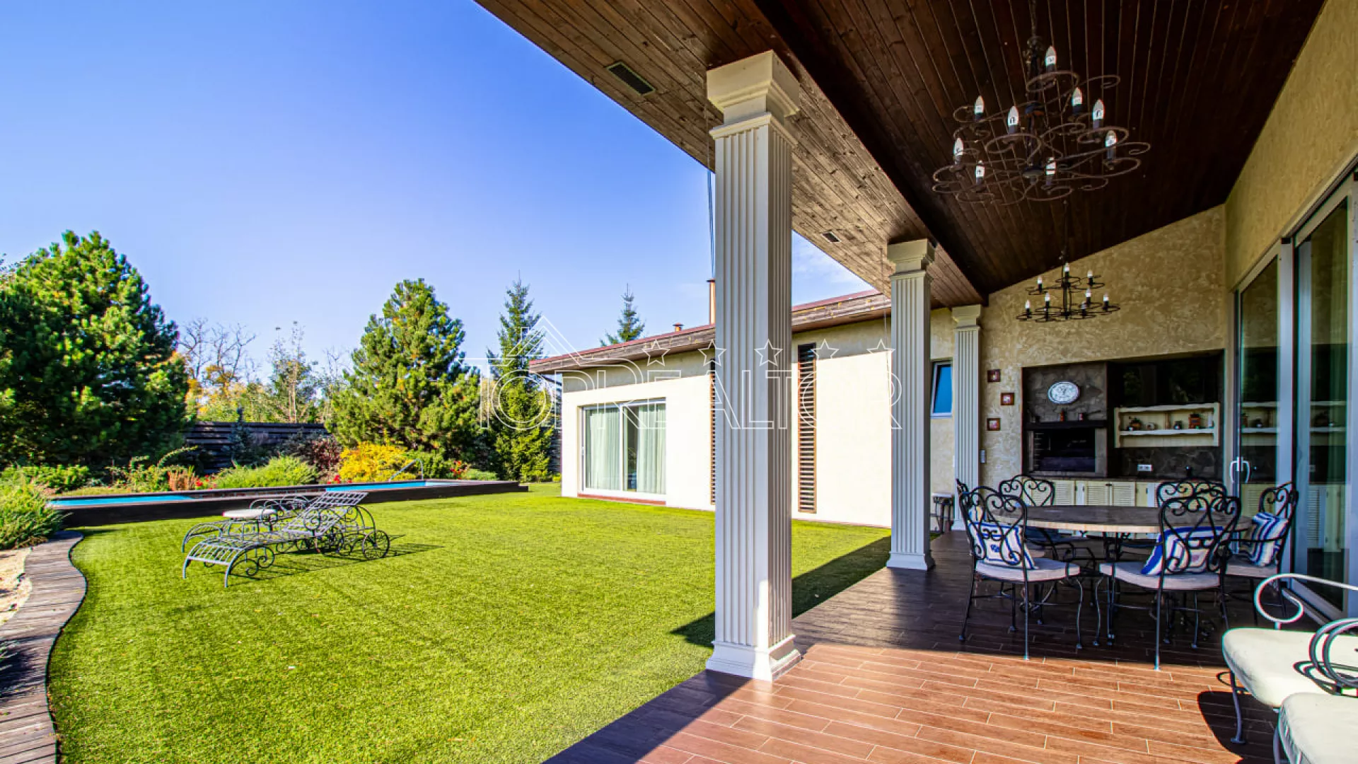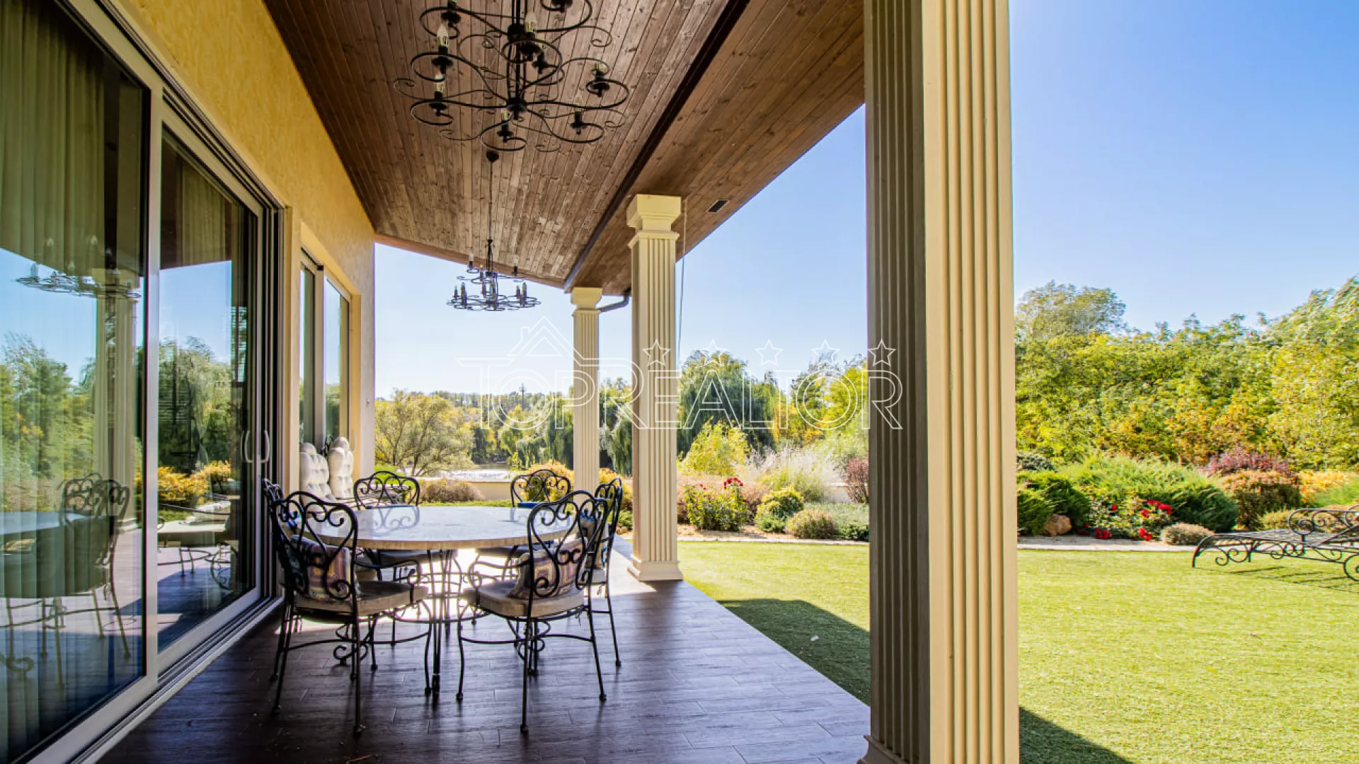 Современный одноэтажный коттедж на берегу озера — Флоринка-1 - Закрытый коттеджный посёлок премиум-класса - Локация: Флоринка-1, берег живописного пруда - Навес: на 3 автомобиля - Бассейн и зона отдыха Описание объекта Продам современный одноэтажный дом, расположенный в элитном коттеджном посёлке Флоринка-1 прямо на берегу пруда. Этот дом создан для тех, кто ценит функциональность, комфорт и эстетику, а также минимальные затраты на эксплуатацию. Из просторной гостиной-студии с панорамными окнами открывается живописный вид на воду. Рядом — два спальных блока с собственными гардеробными и санузлами, детская и гостевая комната. Из гостиной — выход на крытую террасу с мангалом, идеальную для вечернего отдыха. Техническое оснащение: - Отопление — газовый котёл Viessmann - Базальтовое утепление фасада и крыши - Тёплые полы и приточно-вытяжная вентиляция - Энергосберегающие окна и продуманная инженерия Участок 18 соток профессионально озеленён: автополив, декоративные деревья, кустарники, искусственный газон и летний бассейн на поляне с видом на воду. Есть летняя кухня и тех.помещение. Особенности: - Одноэтажный план — максимум удобства и света - Прямой вид на озеро и выход к воде - Минимальные расходы на отопление - Охраняемый посёлок с благоустроенной территорией
