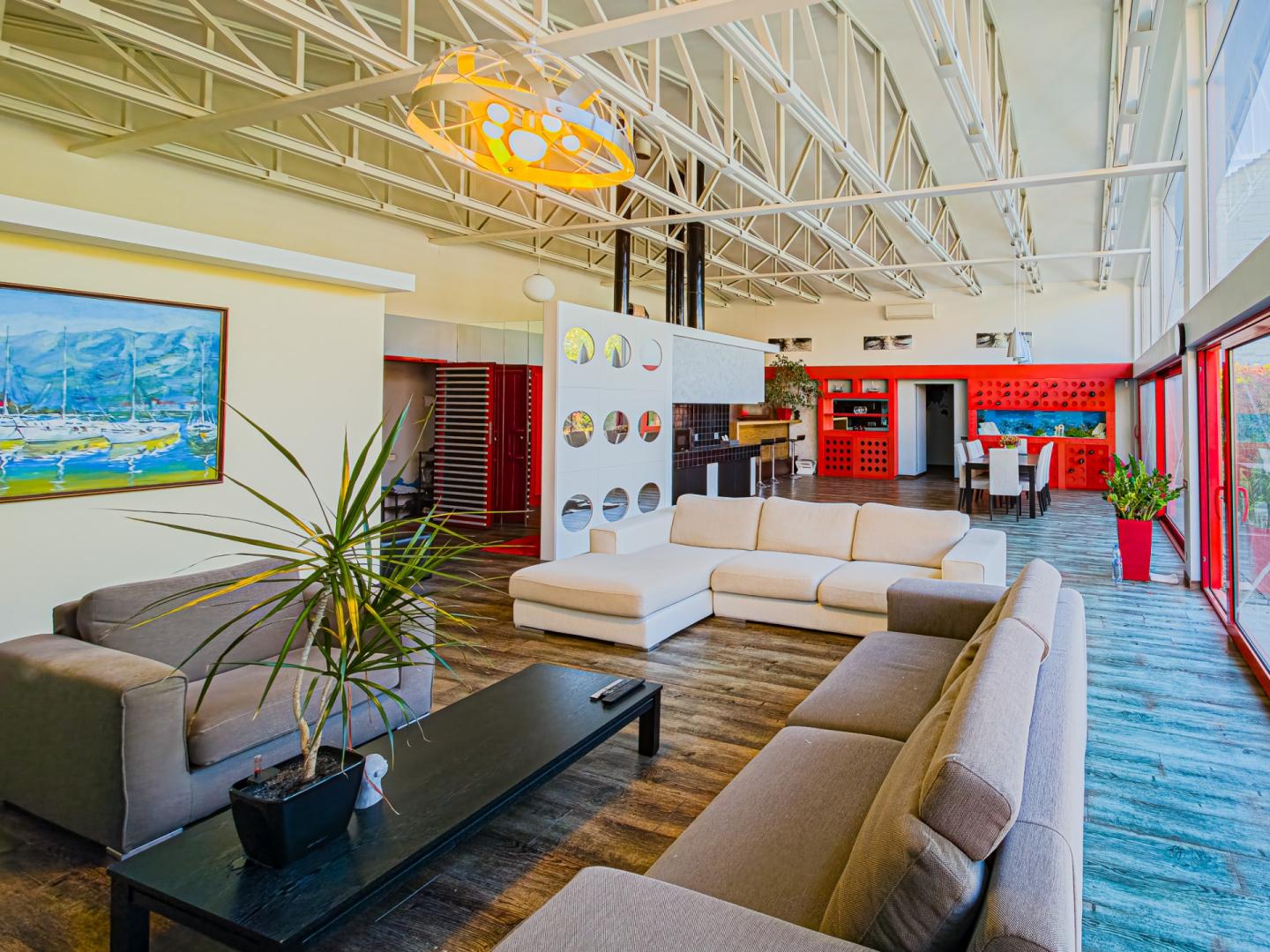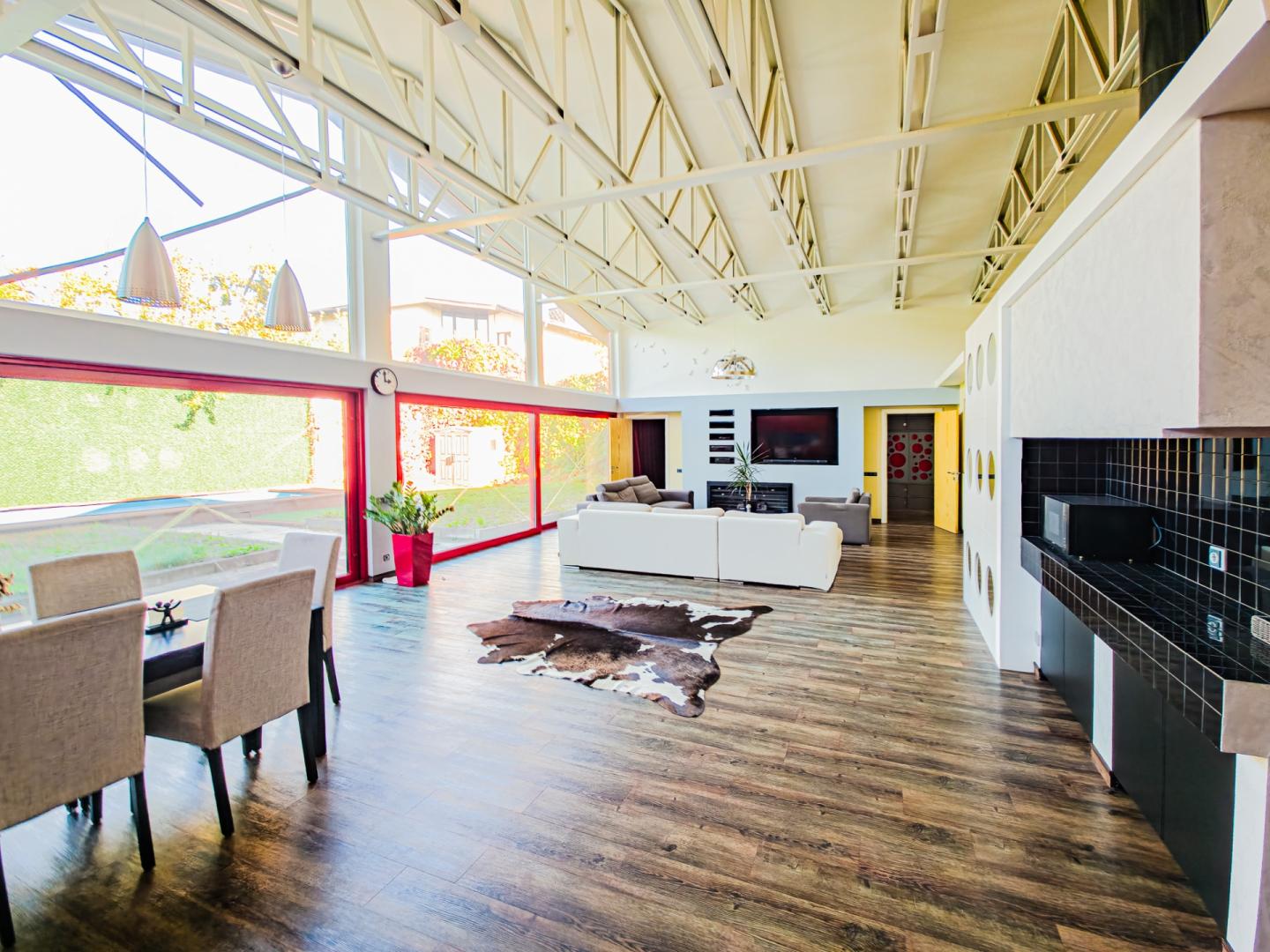 Високі стелі, затишна гостина з панорамними вікнами