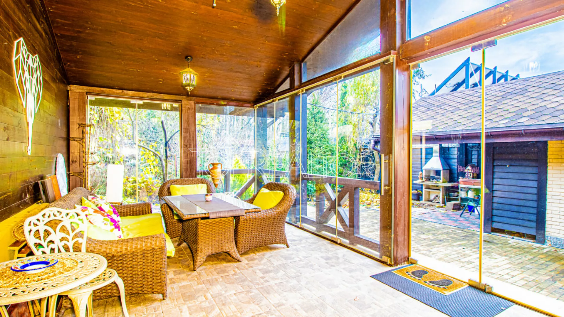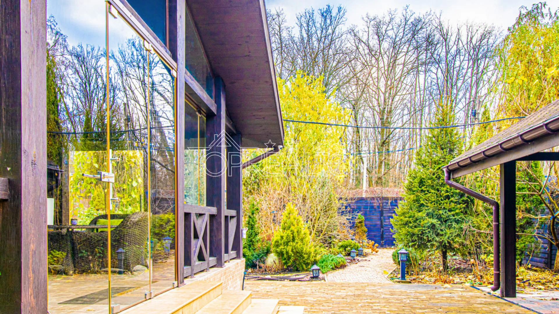 Навес для двух автомобилей, премиальная мебель, профессиональное озеленение