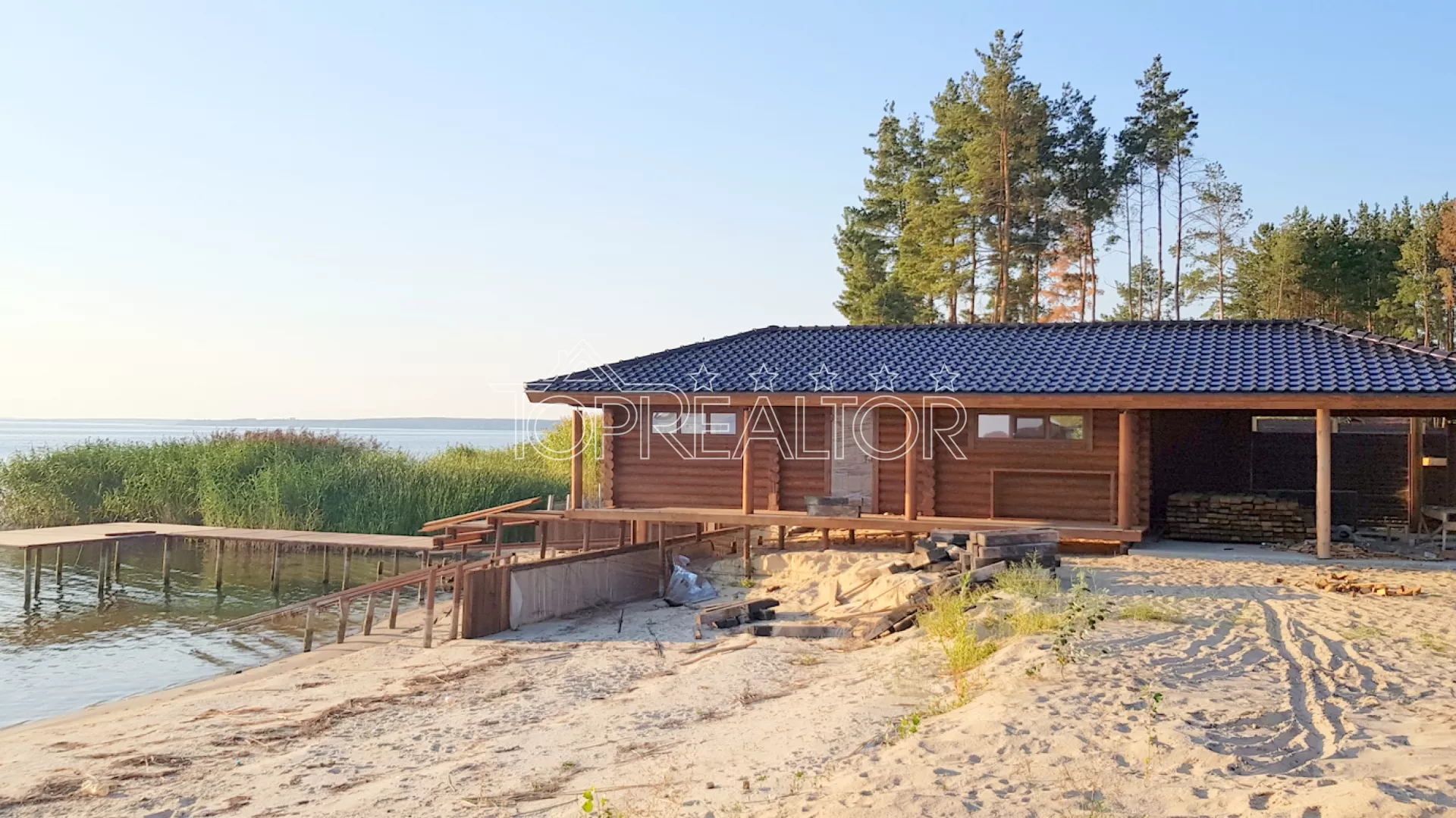 В живописном месте на самом берегу Печенежского водохранилища расположился уютный деревянный дом из цилиндрованного бруса. В этом доме использованы лучшие технологии строительства деревянных срубов. В доме 2 этажа, на первом этаже просторная гостиная и спальня, на втором этаже три спальни и санузел. В доме достаточное количество гардеробных, кладовых и подсобных помещений. Кроме этого рядом с гаражом есть ещё и гостевой домик со своей кухней и двумя спальнями. На берегу построен отличный эллинг для катера или яхты. Участок площадью 50 соток имеет свой широкий песчаный пляж, на всём участке растут сосны. Если вам хотелось бы жить в деревянном доме прямо на берегу- у вас есть отличный шанс купить такой дом! У мальовничому місці на самому березі Печенізького водосховища розташувався затишний дерев'яний будинок із циліндрованого бруса. У цьому будинку використано найкращі технології будівництва дерев'яних зрубів. У будинку 2 поверхи, на першому поверсі простора вітальня та спальня, на другому поверсі три спальні та санвузол. У будинку достатньо гардеробних, комор і підсобних приміщень. Крім цього поруч із гаражем є ще й гостьовий будиночок зі своєю кухнею та двома спальнями. На березі збудований чудовий елінг для катера або яхти. Ділянка площею 50 соток має свій широкий піщаний пляж, на всій ділянці ростуть сосни. Якщо вам хотілося б жити в дерев'яному будинку прямо на березі, у вас є чудовий шанс купити такий будинок!