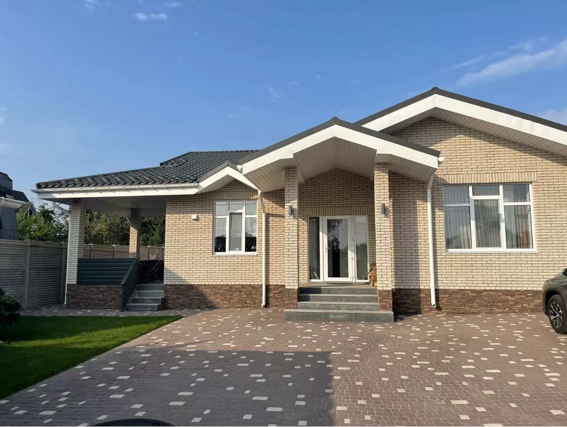 Продаж 1-поверхового котеджу 165 кв.м., в селищі Жуковського, по вулиці Старова. Будинок побудований з червоної цегли, утеплений та фанерований фаготом. 3 окремі спальні, велика гостьова кімната з виходом на веранду, 2 санвузи, тепла підлога по всьому будинку. Виконаний дизайнерський ремонт. Залишаються всі меблі та техніка. Ділянка 7 соток, гараж на два автомобілі, подвір`я викладено плиткою.