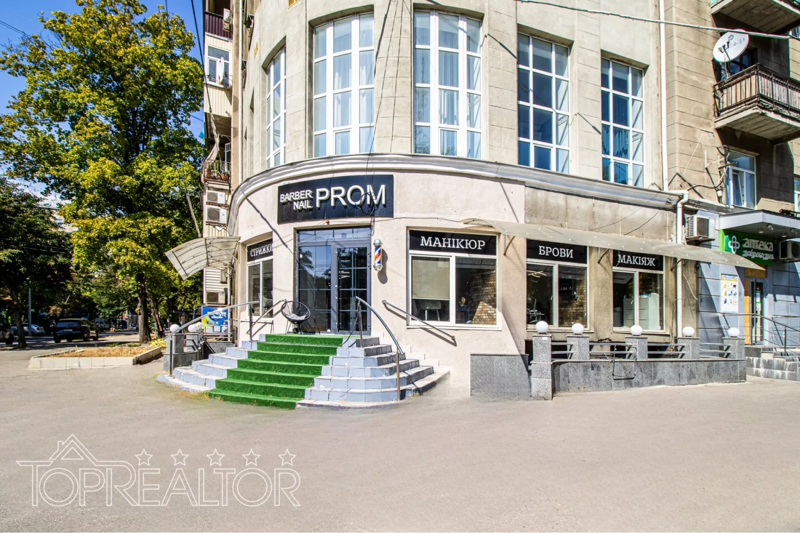Будинок знаходиться на перехресті проспекту Незалежності (колишній проспект Правди) та вулиці Леся Курбаса (колишній Ромен Роллана). Загальна площа всіх приміщень складає 370 м², у т. ч. площа цокольного поверху 115 кв.м., площа 1 поверху 93 кв.м. та площа 2-го поверху 161 кв.м. (висота стелі 5.5 м). У цокольному приміщенні є презентабельна вхідна група з граніту) і є резервний вихід у під'їзд. Головний вхід на перший поверх навпроти перехрестя, також із першого поверху є резервний вихід у під'їзд. Вхід на другий поверх окремий через під'їзд є можливість використовувати центральні сходи, що з'єднують перший і другий поверхи всередині приміщень. Цей об'єкт можна використовувати як під торгівлю, так і як представництво, офіс, банк, медичний центр з можливістю розміщення персоналу у безпечному бомбосховищі. Всі приміщення мають центральне опалення, заведено 3-фазний електричний кабель, проведено всі інтер'єрні та оздоблювальні роботи, працюють орендарі. Якщо ви підшукуєте об'єкт з постійним доходом - зверніть увагу на це приміщення!