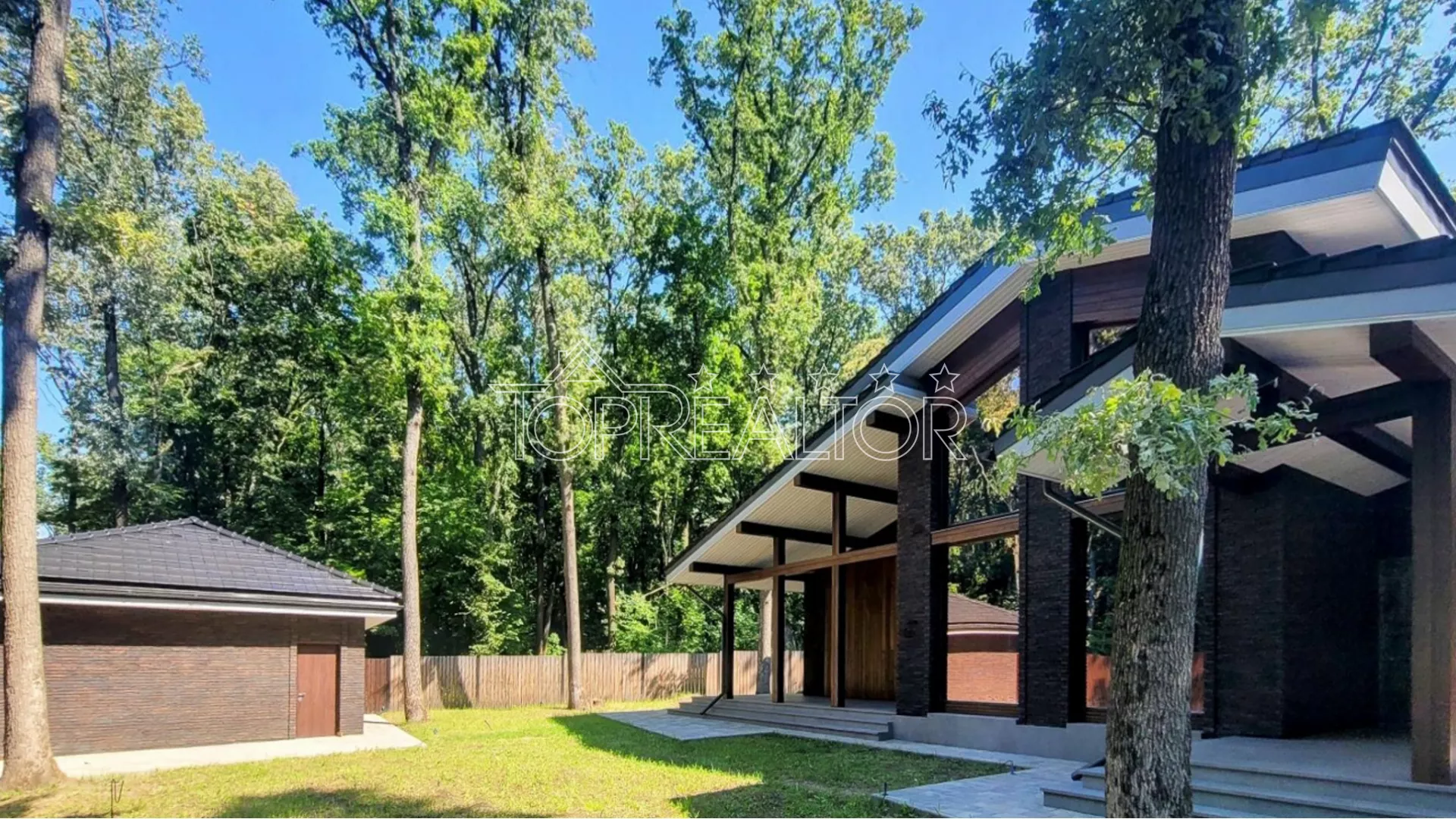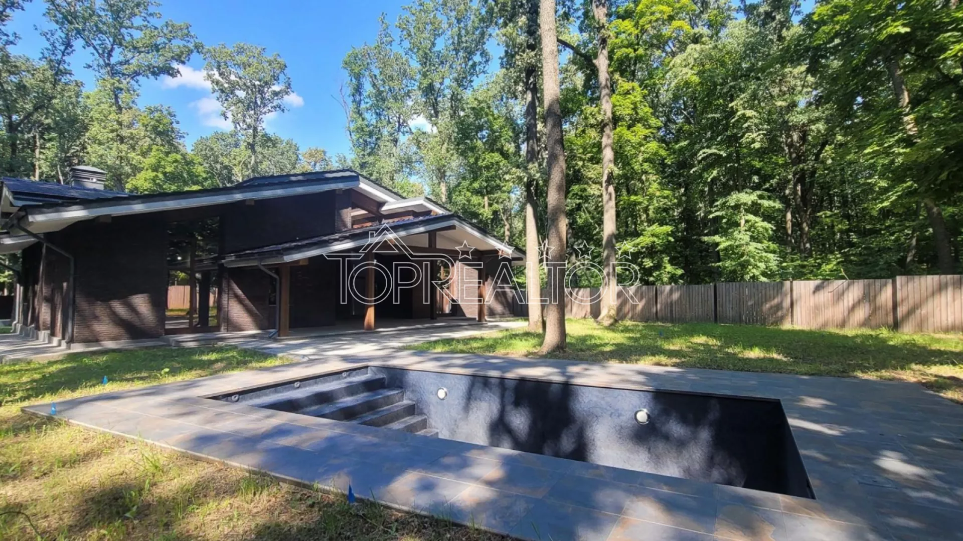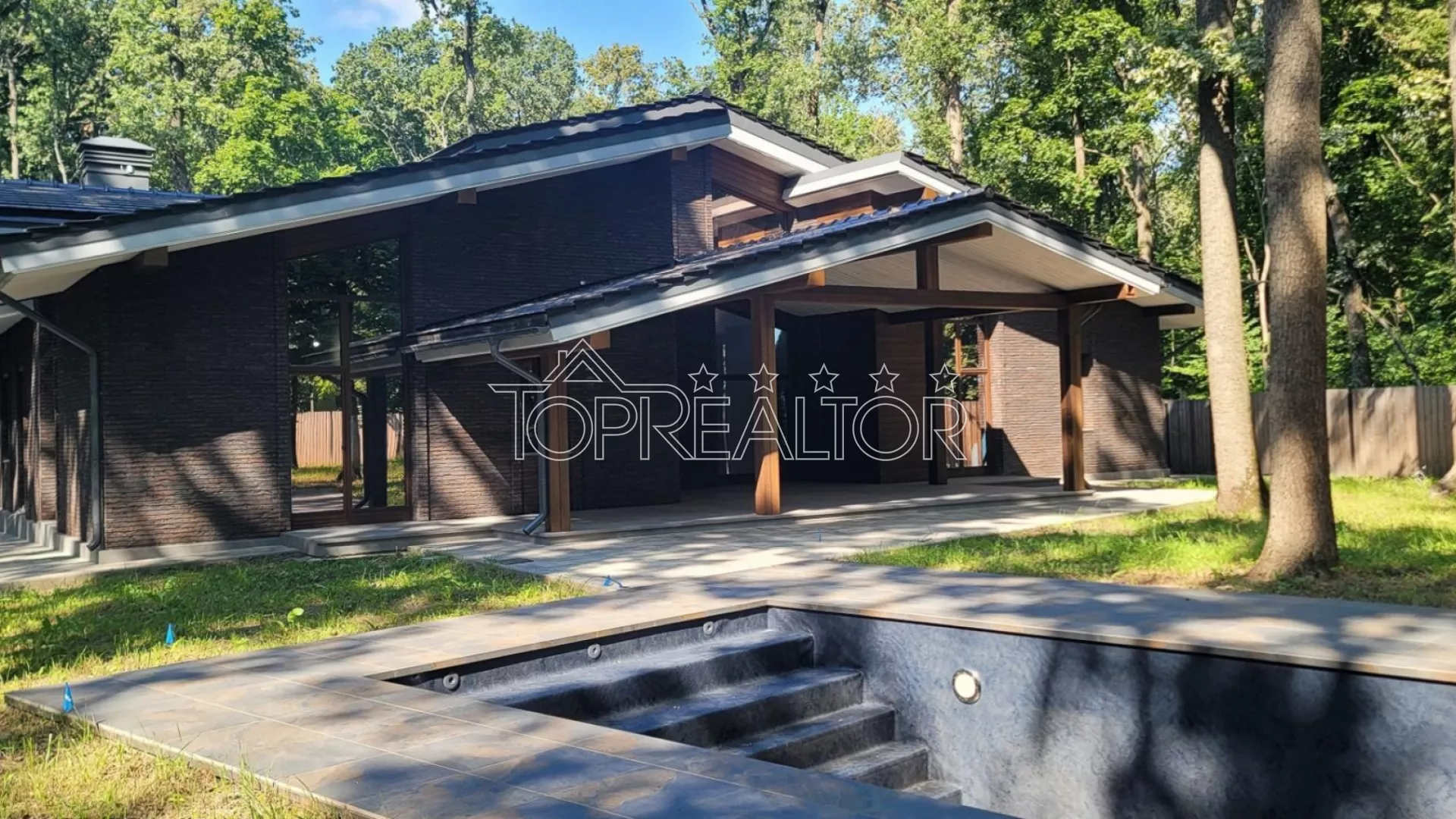 Продаётся современный 1-этажный коттедж в Парк Хаусе. Расположенный среди взрослых деревьев, этот дом предлагает великолепный вид на лесопарк через свои окна. По проекту, коттедж предлагает просторную гостиную площадью 60 кв.м. с большим панорамным окном, столовую площадью 30 кв.м. с выходом на террасу к бассейну, 3 спальни со своими гардеробными и санузлами, а также кабинет. Дом построен из красного кирпича и имеет утепленный фасад с помощью базальтовой ваты толщиной 100 мм. В нём установлены премиальные деревянные окна с тройными стеклопакетами, что обеспечивает отличную теплоизоляцию. Коттедж соответствует самым строгим нормам по энергосбережению. Фасад дома полностью завершён, а все террасы выложены качественной керамогранитной плиткой. На просторном участке площадью 19 соток растут взрослые деревья, создавая приятную атмосферу. Также на участке установлен качественный бассейн с подогревом, и есть гараж на два автомобиля. Этот коттедж предлагает роскошное и комфортное проживание в окружении природы. Не упустите возможность стать владельцем этого прекрасного дома. Звоните прямо сейчас для организации просмотра и убедитесь во всех его преимуществах! Продається сучасний 1-поверховий котедж у Парк Хаусі. Розташований серед дорослих дерев, цей будинок пропонує чудовий краєвид на лісопарк через свої вікна. За проектом котедж пропонує простору вітальню площею 60 кв.м. з великим панорамним вікном, їдальню площею 30 кв. з виходом на терасу до басейну, 3 спальні зі своїми вбиральнями та санвузлами, а також кабінет. Будинок збудований з червоної цегли і має утеплений фасад за допомогою базальтової вати завтовшки 100 мм. У ньому встановлені дерев'яні вікна з потрійними склопакетами, що забезпечує відмінну теплоізоляцію. Котедж відповідає найсуворішим нормам щодо енергозбереження. Фасад будинку повністю завершено, а всі тераси викладені якісною керамогранітною плиткою. На просторій ділянці площею 19 соток зростають дорослі дерева, створюючи приємну атмосферу. Також на ділянці встановлено якісний басейн із підігрівом, і є гараж на два автомобілі. Цей котедж пропонує розкішне та комфортне проживання в оточенні природи. Не проґавте можливість стати власником цього прекрасного будинку. Телефонуйте прямо зараз для організації перегляду та переконайтеся у всіх його перевагах!