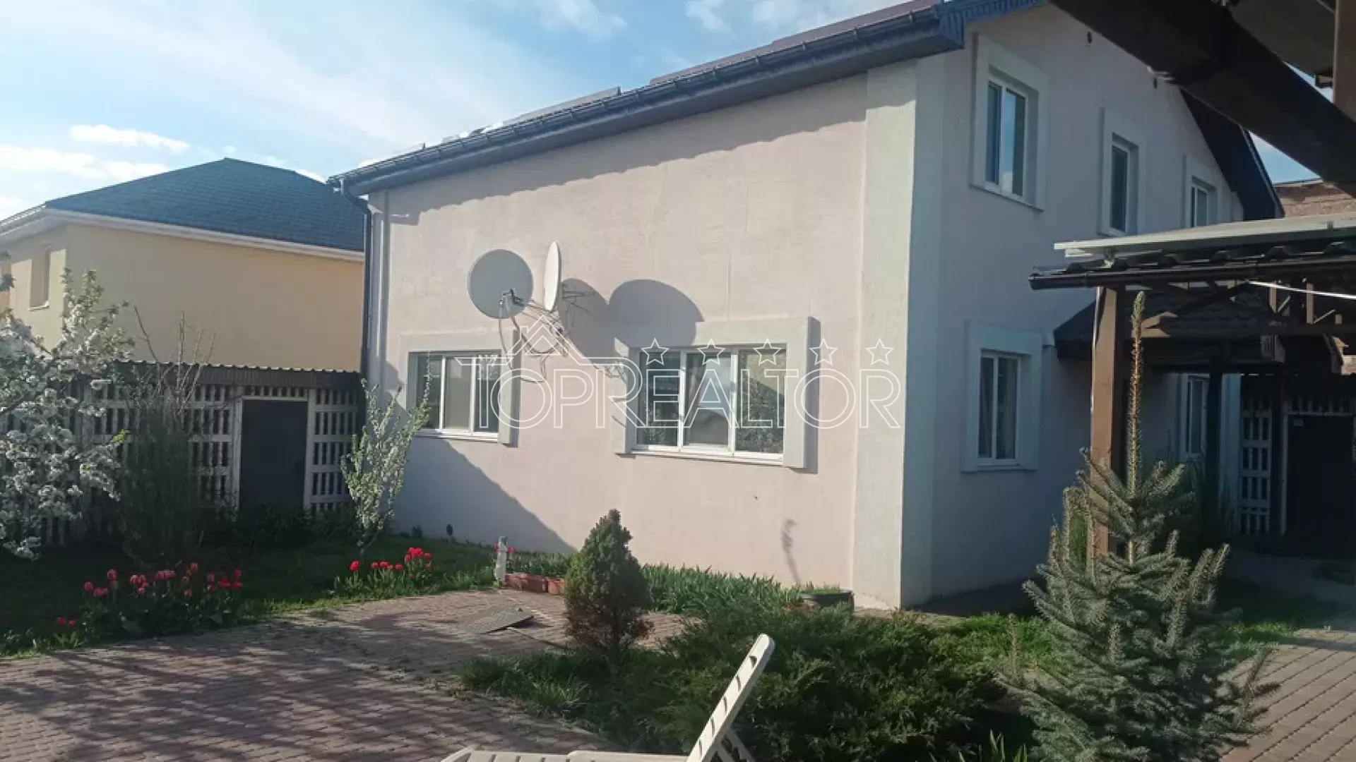 Будинок каркасний за канадською технологією загальна площа 166 кв.м, фундамент капітальний, стрічковий глибина 140 см. Два поверхи: зал - кухня 40 Кв.м, два з/в, вбиральня + 5 кімнат, всього 9 кімнат. Господарські приміщення 144 кв.м. Мiсце для вiдпочинку в саду 24 Кв.м. Навіс під машину 35 кв.м. Сигналізація. Відеоспостереження 4 камери, реєстратор. Вікна REHAU-3 скла. На батареях терморегулятори. Дах металочерепиця фінська RUUKKI на гарантії. Велика потужність електрики 3 фази – 35 кВт, автомати 3 шт. по 63 А . Модемний лічильник. Сонячні панелі 16.65 кВт (30 шт по 555 Вт), акумулятори 16 кВт, інвертора на 34 кВт. Зелений тариф. Супутникове ТБ. Свердловина 50 м. Камін – буржуйка. Вольєр для собаки. Тротуарна плитка Старе місто. Хороший під'їзд до ділянки. Опалення електричне чи дрова, газ по вулиці. Залишаються всі меблі та побутова техніка. Можливий продаж за програмою єВідновлення за сертифікатом