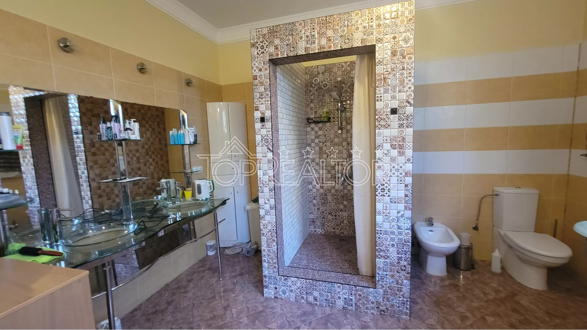 Продам большой коттедж на Баварии. Площадь гостиной 45 кв.м, в ней есть камин, потолки высотой 6 метров. Рядом на 2-м ярусе просторный холл с зимним садом. В доме 5 спален, есть много места как для общения, так и для отдыха. Рядом со спальнями расположены гардеробные и санузлы. К дому пристроен бассейн с сауной и зоной отдыха, также есть полностью оборудованый тренажёрный зал, а в цокольном этаже есть русский биллиард. На участке 20 соток выполнено профессиональное озеленение, высажено большое количество деревьев и декоративных растений, большая гостевая парковка и гараж на 3 авто. Продам великий котедж на Баварії. Площа вітальні 45 кв.м, у ній є камін, стелі заввишки 6 метрів. Поруч на 2-му ярусі просторий хол із зимовим садом. У будинку 5 спалень є багато місця як для спілкування, так і для відпочинку. Поруч із спальнями розташовані вбиральні та санвузли. До будинку прибудований басейн із сауною та зоною відпочинку, також є повністю обладнаний тренажерний зал, а на цокольному поверсі є російський більярд. На ділянці 20 соток виконано професійне озеленення, висаджено велику кількість дерев та декоративних рослин, велике гостьове паркування та гараж на 3 авто.
